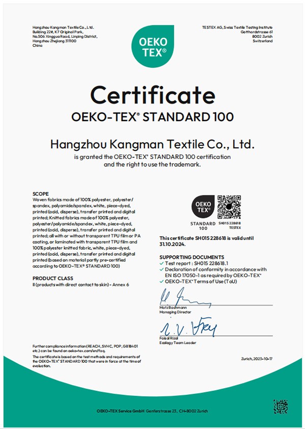 Kangman Textile има 30 години богат опит и история на печатането и боядисването на текстил, с обслужване, качество, ефективност на разходите и продуктови иновации и развитие като основна конкурентоспособност, ангажира се с изследването и развитието на продукти от плат от висок клас. K&M textile също има своя зависима фабрика за боядисване, вътрешен център за тестване, отличен екип за научноизследователска и развойна дейност и активен екип по продажбите, които могат да проектират и разработват тъкани според изискванията на клиента. В същото време разполагаме с пълна гама от продукти от плат, разнообразие от безплатни A4 мостри, които можете да изберете.
